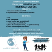 MATERNIDADE CÂNDIDO MARIANO OFERECE VAGAS EXCLUSIVAS PARA PCD DIVERSAS FUNÇÕES: